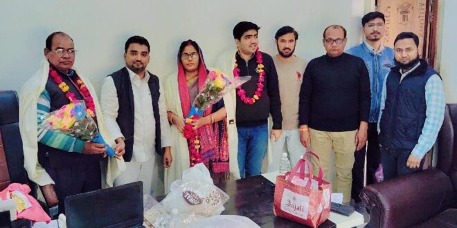 इटावा। एसआईआर प्रक्रिया में महत्वपूर्ण और सराहनीय योगदान देने पर वरदान वेलफेयर एसोसिएशन एवं बुनकर एकता समिति के तत्वावधान में कासिम अंसारी ने अपनी टीम के साथ बाह अड्डा स्थित कार्यालय पर दो बीएलओ को सम्मानित किया। वरदान वेलफेयर एसोसिएशन के अध्यक्ष कासिम अंसारी ने अपनी टीम के साथ करनपुरा व बाह अड्डा के बीएलओ उग्रसेन तथा पुरोहितन टोला की बीएलओ विमला देवी को बुके देकर, पुष्प अर्पित कर और शाल उढ़ाकर सम्मानित किया साथ हो उनके द्वारा किये जा रहे कार्यों की सराहना की। कासिम अंसारी ने कहा दोनों बीएलओ क्षेत्र में कड़ी मेहनत कर लोगों तक एसआईआर फार्म पहुंचा कर फार्म भरने में काफी सहायता कर रहे हैं ताकि लोग फार्म भरने से छूट न जायें। उन्होंने मतदाताओं से अपील की है कि वह अपना एसआईआर फार्म भरकर बीएलओ के पास अवश्य जमा कर दें और अगर फार्म भरने में कोई दिक्कत आए तो बाह अड्डा स्थित कार्यालय पर आकर अपनी समस्या का समाधान कराएं। बीएलओ उग्रसेन ने बताया कि करीब 900 फार्म वितरित हो चुके हैं और करीब 725 फार्म अपलोड हो चुके हैं। बीएलओ विमला देवी ने बताया कि अधिकांश फार्म वितरित हो चुके हैं और लगभग 800 फार्म अपलोड हो चुके हैं। इस अवसर पर दिव्यांशु, राजीव पाल, हाफिज मोहम्मद आबिद, मोहम्मद शाबान, जीशान अंसारी, शफीक अंसारी, इमरान खान, डा. मोहम्मद रफी, शावेज़ नक़वी आदि उपस्थित रहे।
